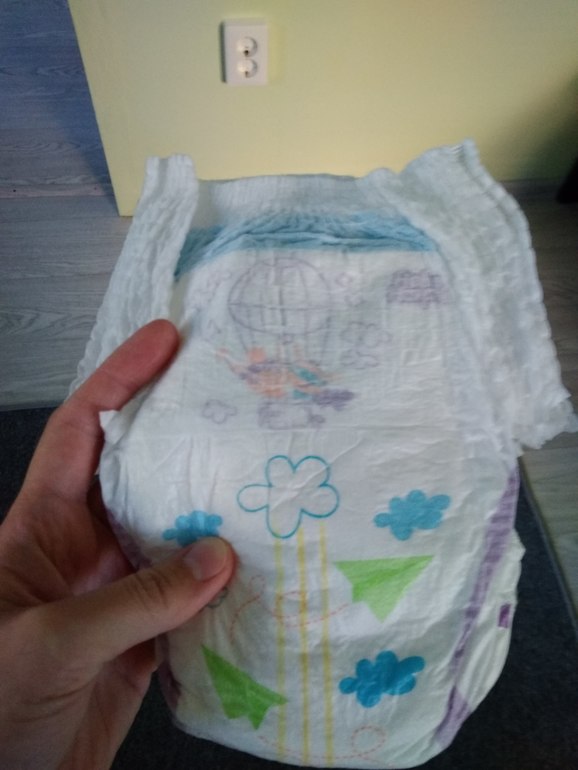 На день и памперс норм, но после ночи попа сырая в них, хаггис в этом плане гораздо лучше