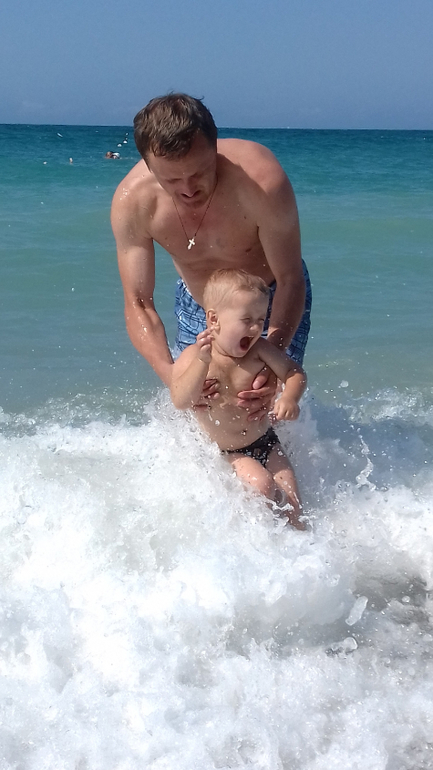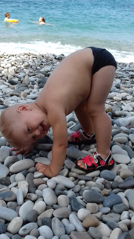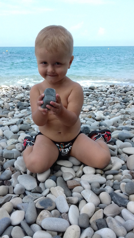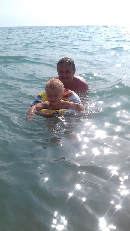 Ездили на море с палатками на 5 дней. Долго сомневалась, можно ли с маленьким, но решили, что, если не выдержит, сразу уедем. Но все прошло прекрасно, никуда не убегал, все время около нас, кушал хорошо, спал тоже, режим не меняли, в 21.00 как и дома, спать)) Днем с 13 часов сон. Плавал с кругом, море очень понравилось, не вытащить было, по пол часа плавали, 5 мин загорали и опять)) Теперь как видит море по ТВ, показывает пальчиком и говорит Море-море))
