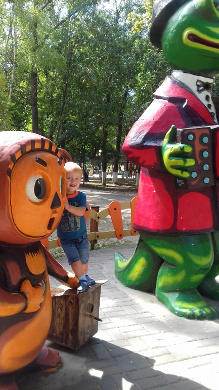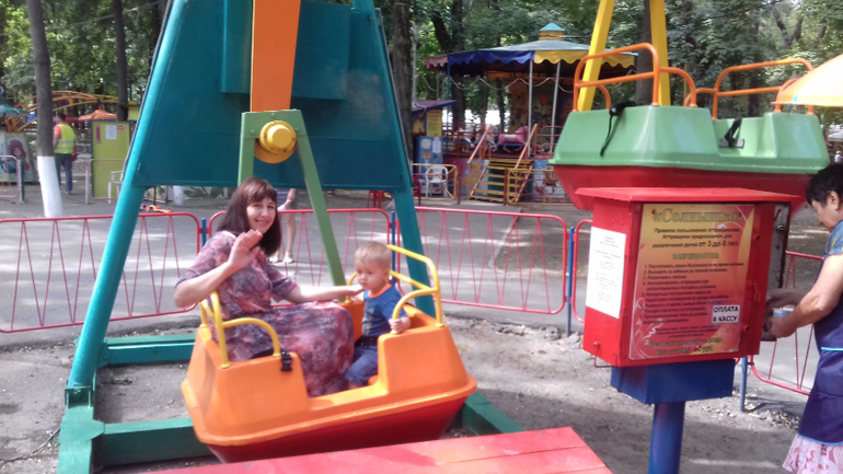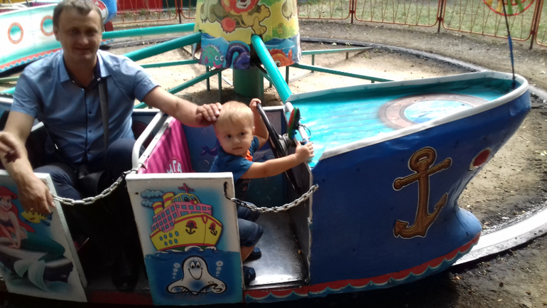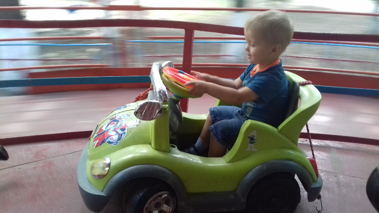 Еще, 1 сентября, мы впервые катали ребенка на каруселях в парке, восторга не видела, его больше интересовали кнопки, колеса, механизмы, которые он рассматривал во время катания)