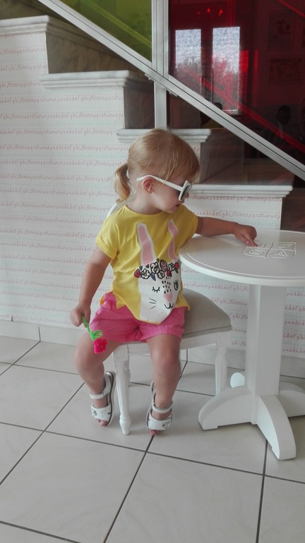 Лена. Всю ту неделю водили её на 2-3 часа. В первый день она бодро зашла в здание сада, носилась по коридорам, пока мы ждали распределения в группу. Потом зашли мы в класс, а там мальчик один глаза вытаращил и орееет, заливается! Я пытаюсь воспитателю рассказать про режим, привычки, питание, а меня не слышно из за его рева. Леньё испугалась, залезла ко мне на руки и вцепилась в шею. Я ее отвлекла игрушками и пошла потихоньку на выход. Когда уже открывала дверь, она бросилась ко мне с криками "мама, мама!", а воспиталка ее не пустила. Сказали потом, что быстро успокоилась. Все остальные дни то же самое, заходит спокойно в здание, поднимается на этаж, а вот в комнату заходить не хочет, начинает проситься писать, потом мыть руки, потом еще раз писать.. Но с каждым разом все спокойнее расстается. В пятницу ее отвозил папа, только скорчила обиженную мордашку "Я хочу папа!", сегодня вообще спокойно пошла. Сегодня она даже спала в саду, правда, странно ее уложили, на полчаса всего. Сразу начала больше разговаривать, и на русском, и на греческом. Единственное что, никак с туалетом там не подружится, хотя дома ходит без проблем. В саду каждый раз одна и та же история, идут мини группой в туалет, ничего там не делает, а потом заходят в группу, и там писается. Сегодня первый день вернулась в тех же шортах, что и ушла. Будем надеяться!