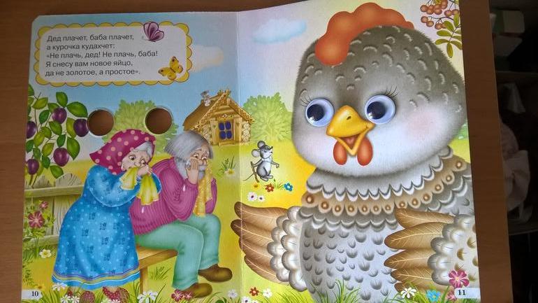 Ещё один фаворит - "Курочка Ряба". Тут тоже легко определить, что Дочке хочет "читать" именно её: она начинает театрально плакать, как дед и баба. 😂