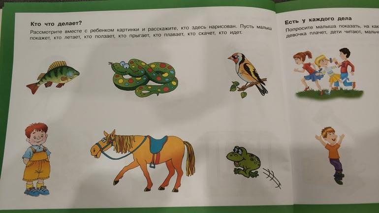 Книжка красивая))) Моей маме педиатр говорила так: если хотите, чтоб ребёнок рано заговорил, комментируйте все, что делаете и видите. Я наливаю чай, ты сейчас идёшь, там сидит птица. Односложными предложениями, не быстро.