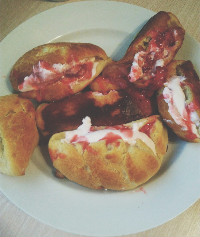 И тефтели, и пасту , и даже эклеры с творожно-ягодным кремом. Когда взбивала крем миксером, даже хохотал, как миксер шумит и заглядывал в банку .. так смешно))))