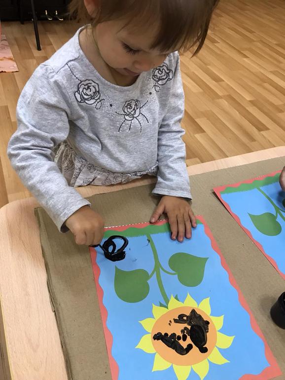 Мы много чем занимаемся, и дома, и в нашем любительском клубе при ДК (сами ведем занятия со своими малышами). Дочка очень полюбила аппликацию. Рисовать ватными палочками (гуашью или акриловыми красками без воды), еще на размазанный по картону пластилин (например, сердечко или яичко) наносить мелкие стразики, бусинки, пайетки, посыпать блеском. Очень красиво. Не смогла открыть весенние фотки. Мы даже пасхальную выствку организовали в ДК)))