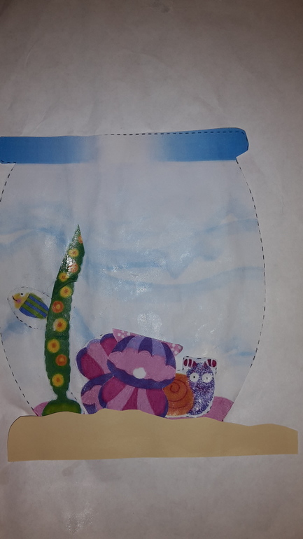 Еще в начале были солнышки, тучки, деревья, травка, домики, улитки и зайчики, цветочки.