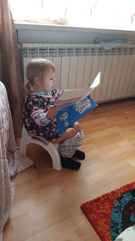 Маленькая девочка, а фото как взрослого человека, что на горшке с газетой, что за столом))))