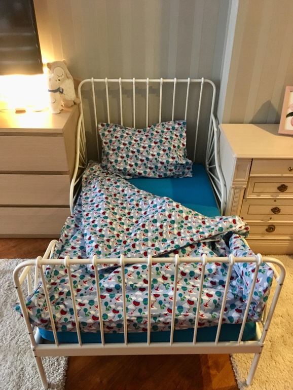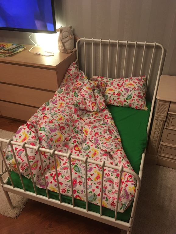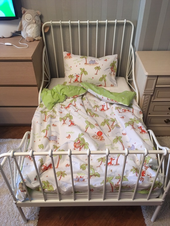 Кроватка и постельное белье служат нам верой и правдой все это время, но уже с младшей дочкой (4,8 года). Уже даже в планах раздвинуть до следущего уровня (до 165 в дину). А вообще как же не хватает магазина Икеа, почти все купленное там, до сих пор как новое! Думаю может внукам оставить и не продавать )))))