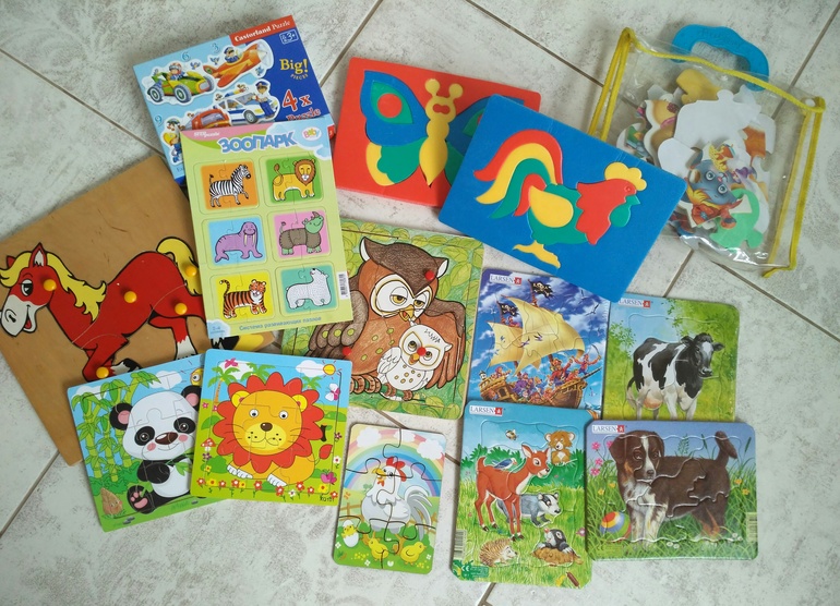 Ну и пазлы самые простые уже можно начинать пробовать, о наших писала : Первые пазлы для малышей