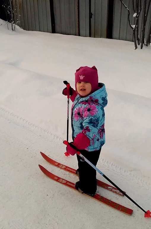 К концу теплого сезона лихо гоняла на самокате и беговеле. С наступлением зимы стали осваивать давние хотелки - коньки и лыжи. Лыжами она бредила еще с лета. Дед презентовал советсткие "Малыш" и новые палки. Встала и поехала с первого раза. Но особой радости в итоге они у нее не вызывают, периодически немного по улице ездит.