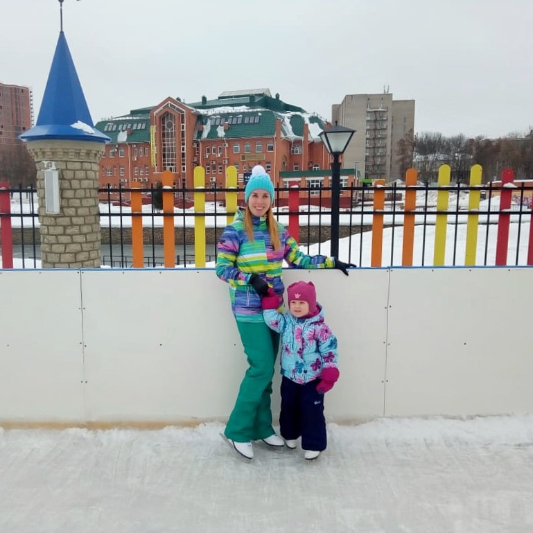 Зато вот коньки страсть как любит. Сначала боялась, потом привыкла. Скользить не особо получается, но льда не боится и ходит по нему уверенно. На этом фоне и мне пришлось учиться и даже коньки себе купить.