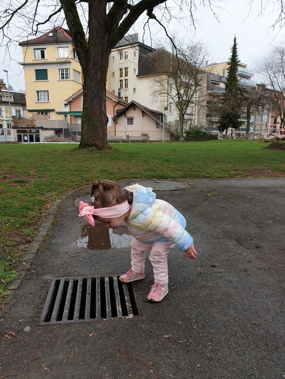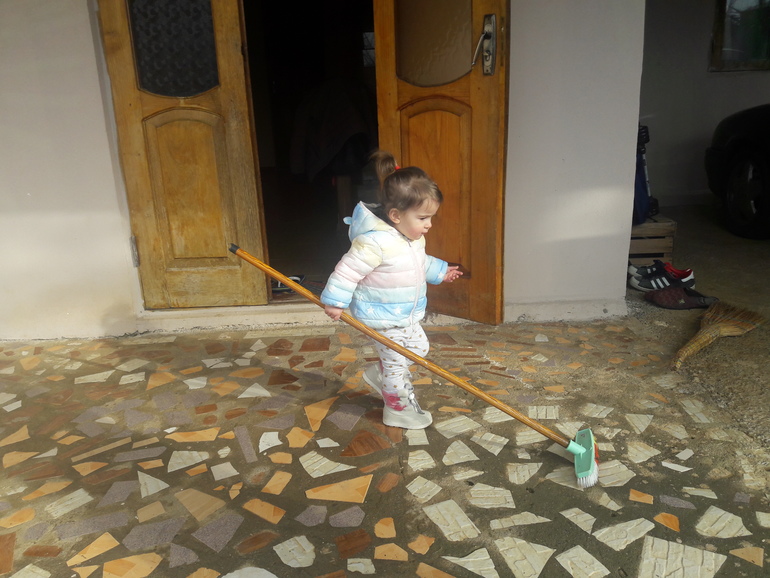 Вообще прогулки теперь становятся день ото дня интереснее. Пытается разговаривать с детьми на площадке, что-то там им объясняет на смеси русского, французского и тарабарского. Любит кормить голубей, воронам кричит "Каррр! Каррр!", всю живность подзывает по-грузински "Моди! Моди!", но так громко, что живность разбегается 😅
