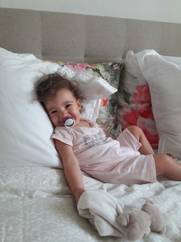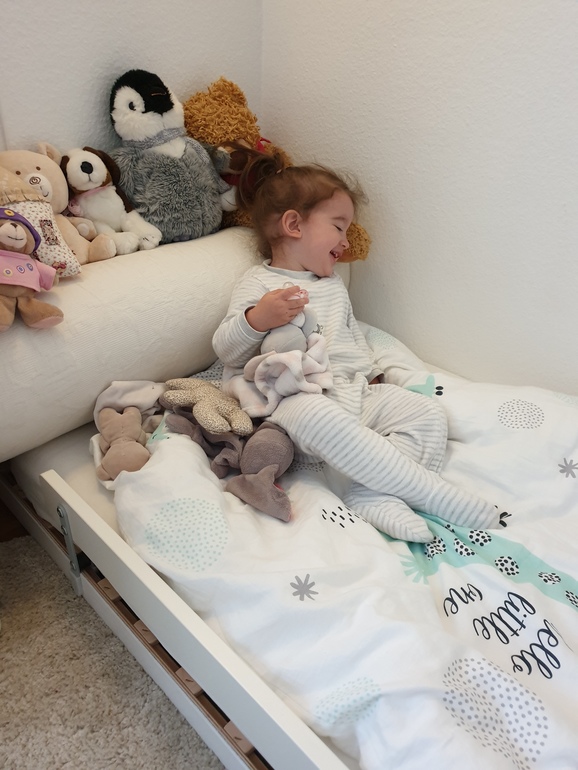 Это одно из самых правильных моих решений с рождения дочери. Она стала намного лучше спать, когда просыпается, сама встаёт и идёт, куда хочет, а не плачет в кроватке, как раньше. Ночью пьёт из поставленной рядом бутылки. Утром приходит меня будить и целоваться 🥰 Ага, та ещё целовашка. Любимое слово: "люблюююююю!" и тянется обниматься, то со мной, то с папой по видеозвонку, телефон крепко-крепко к груди прижимает. А ещё иногда пытается обнять меня и папу в телефоне одновременно, я растрогалась, когда в первый раз увидела.