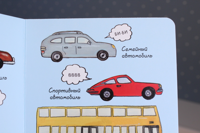 Как видите, транспорт сгруппирован на разворотах тематически. И надо отдать должное автору, пожалуй, до сих пор я никогда не задумывалась, как по-разному можно озвучить машины😅. Более ничего интересного я в этой книжице не нашла и отправила её на полку. Откуда сынок стал приносить мне её с завидным постоянством...