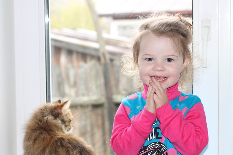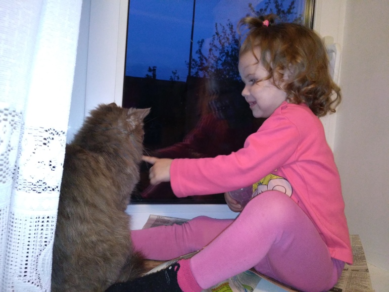 Очень любит мультик "Три кота". Наконец то убрала из зависимости телефон. А то был период , когда до истерики просила телефон . Сейчас телефон спокойно лежит и ей не нужен. Знает, что это мамин и трогать его нельзя. Принесет мне, если только звонить кто то будет. Еще И с таким деловым видом прибежит, типо Я его не беру, тут просто звонят))))