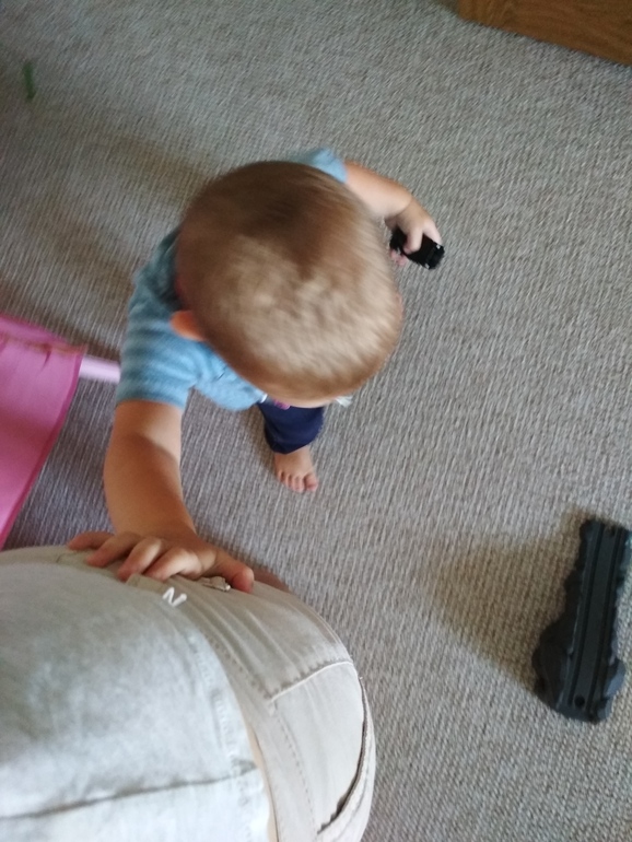 Белье из машинки носим вместе, в этом плане ему как раз нравится участвовать в быту, и эти те самые 10%, когда он на ручки не лезет, а занимается помощью.