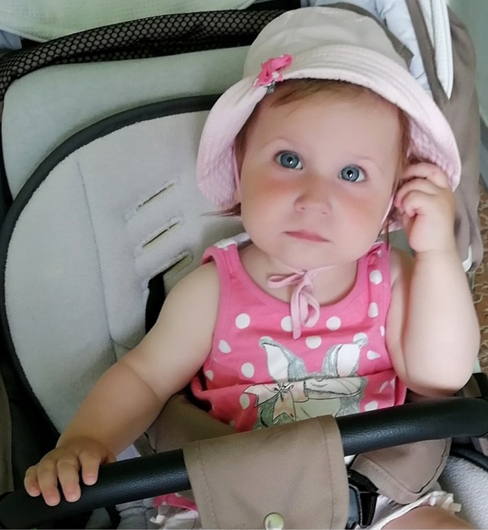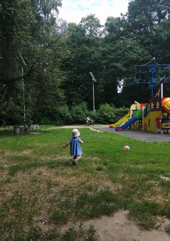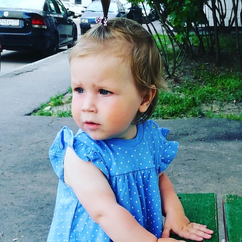 На улице хорошо лазиет по ступенькам, сама скатывается с горки. Любит качели, сидеть в песочнице. Охотно общается с детьми.