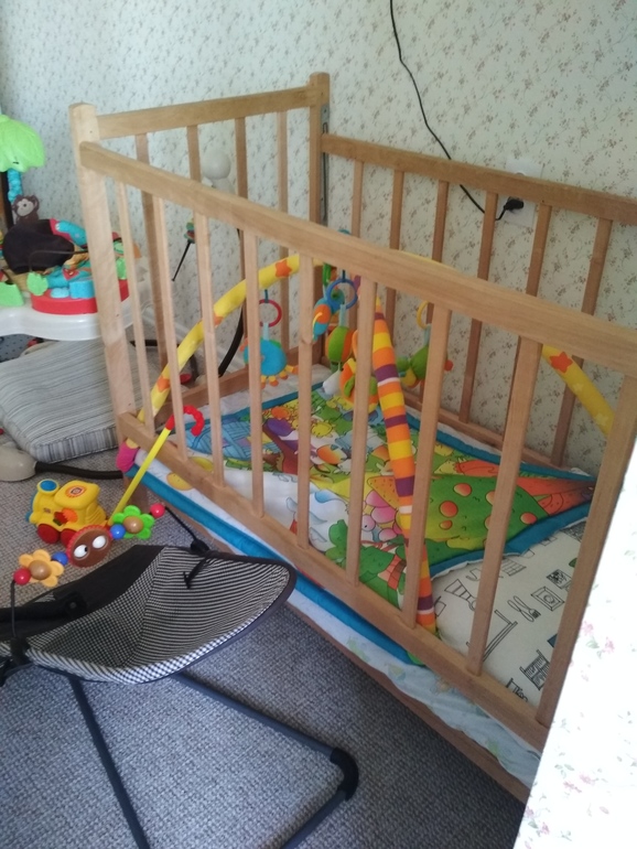 Так и я про него. Из кровати выбраться не может, поэтому вот так нам удается уложить его сейчас (и последние 4 месяца). А с обычной детской кроватью побег на побеге.