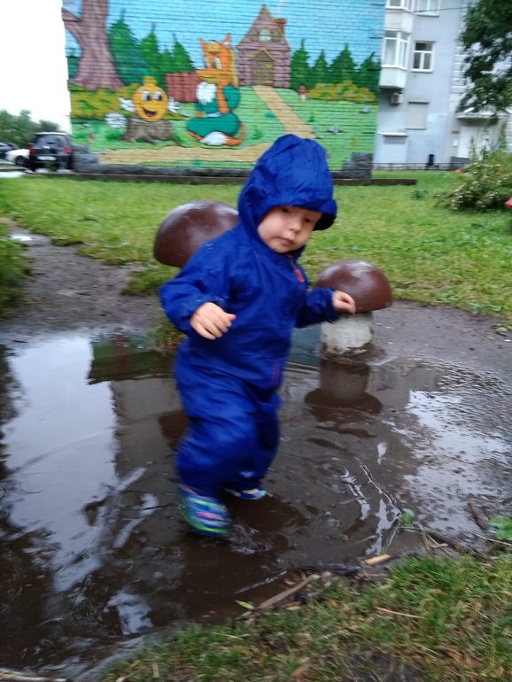 Детские сады, клубы, центры... есть неправильно подобранная одежда!Сегодня а первый раз гуляла с младшим под дождем. Восторгов море, наплескался, нашлепался по лужам. Довольный.