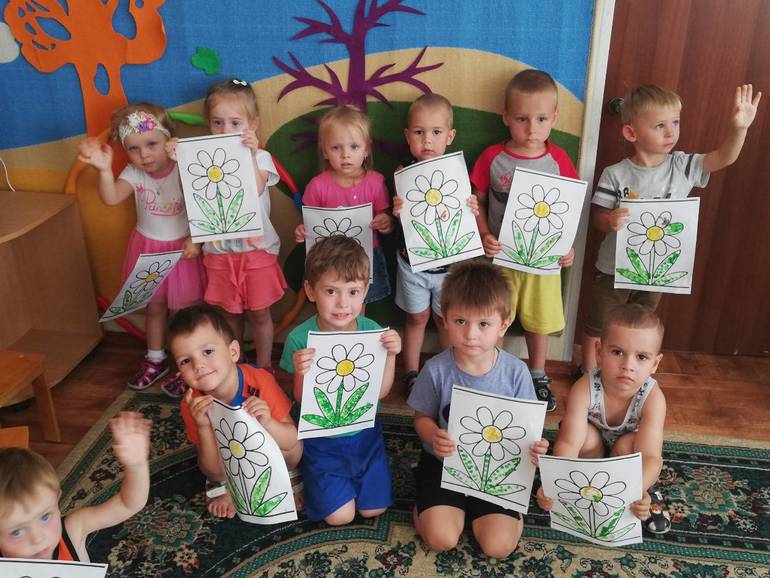 Дома плотно завтракает зато! Все утренники и садиковские фотосессии мы пропускали ибо стоял ор. С детьми в группе только сейчас начал общаться, до этого целый день сидел на стуле и ждал когда мама заберет, хотя на площадке дома играет, общается, всегда идёт на контакт! Пополнился словарный запас! До садика тоже начал разговаривать, но стрессы дали откат! В общем сегодня в день семьи, любви и верности сыночек разукрасил ромашку и сфоткался со своими одногруппниками)))