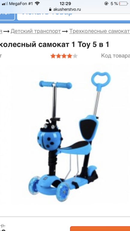 Тоже присматривали подобный, но уже на следующий год) Нам больше понравился в магазине Denma77, не помню, как называется, но у него колесики светятся и выглядит в целом более эргономично и должен быть более маневренным) Вот, акцию ждем)))