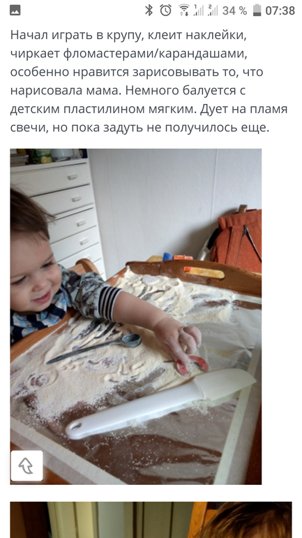 Тесто для лепки сейчас не даю,т к ест и наклейки жует.Рисует на улице мелом,дома фломастерами, восковыми мелками.Реже акварельными красками.