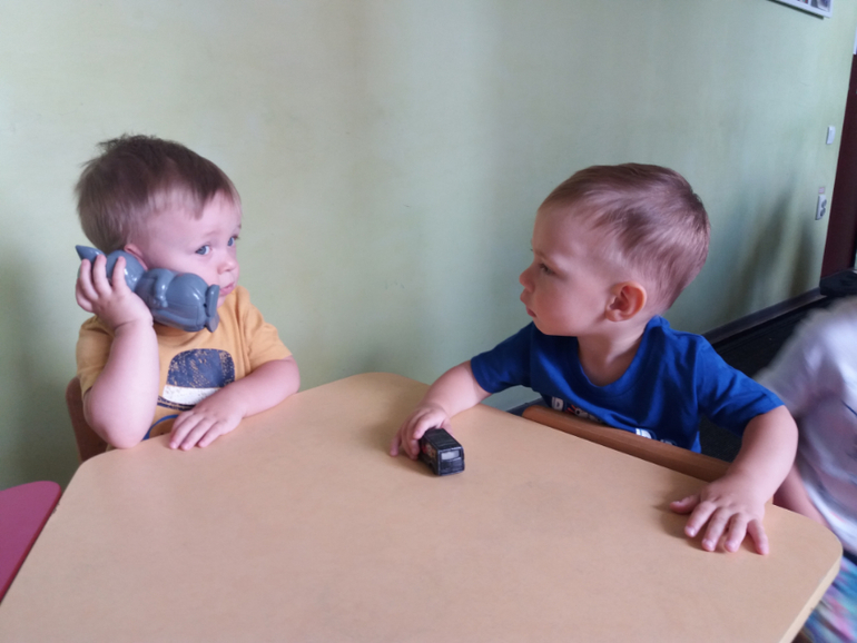 Ещё наша проблема номер один на данный момент - вообще не отпускает меня от себя ни на секунду! Если я исчезла с поля зрения - хана, слезы градом и истерика. Пытаюсь приучить его к обществу, но карабкается на меня и впивается лицом мне в плечо. И жалко его, но и раздражает иногда. Отдает игрушки кому угодно, точнее если другой ребенок забирает, то не борется, просто разворачивается и уходит, если кто-то из детей случайно или не случайно ударит, начинает бояться его вплоть до истерики. Мы с мужем говорим, что мягкотелый он черезчур)) Но надо бы учить постоять за себя..