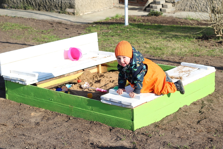 С удовольствием копается в песочнице, делает куличики. А вообще на участке любимая игрушка - это мангал. Интересно, если продаются игрушечные кухни для девочек, есть игрушечные мангалы для мальчиков?🤣