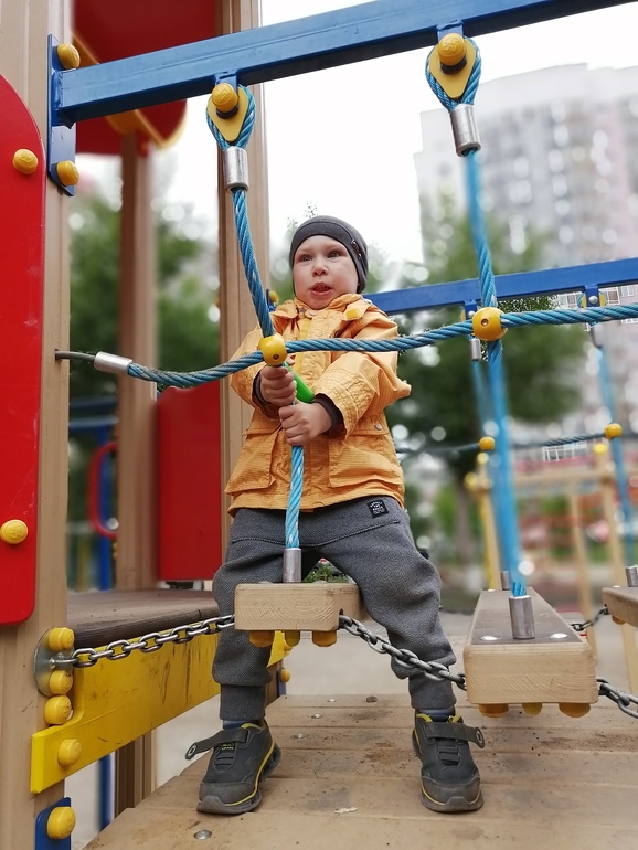 Человек немного поменялся в плане физ. активности. Если тем летом нужна была только песочница и качели, с горки максимум 2 раза, лазилки все мимо, то этим летом горка спиралька это мое проклятье😃 Каждый день как на работу ходим на нее, все лазилки тоже освоены. Он очень аккуратный, всегда ходил со мной за руку, боялся упасть. С разговорами и страховками за попу стал залазить везде, понял, что умеет и все не так страшно, теперь все сам. Бежит вперед, потом оборачивается ждет меня. Если бежал и упал где-то, об камень запнулся, например, то потом по этой дороге бегать не будет, запомнит место падения.