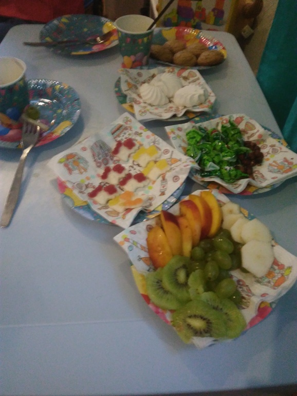 Печенье, фрукты, мармеладки, орешки, желейные конфетки, да и этого оказалось много, многое осталось.
