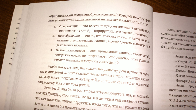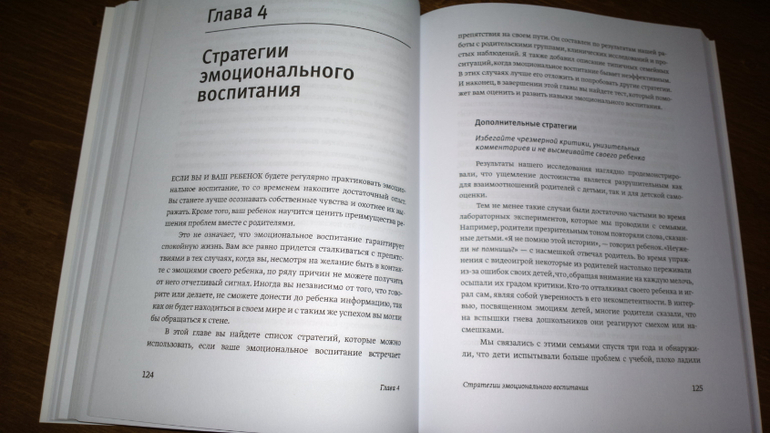 "ЧЕМ ЖЕ ЭМОЦИОНАЛЬНОЕ ВОСПИТАНИЕ ребенка отличается от обычного воспитания? Наблюдая и подробно анализируя слова, действия и эмоциональные реакции семей, мы обнаружили поистине значительный контраст. Дети, чьи родители постоянно использовали эмоциональное воспитание, имели более крепкое здоровье и более высокую успеваемость.У них лучше складывались отношения с друзьями, наблюдалось меньше проблем с поведением, они были менее склонны к насилию. Дети, имеющие опыт эмоционального руководства, обладали лучшим эмоциональным здоровьем и испытывали меньше негативных, а больше позитивных чувств.
