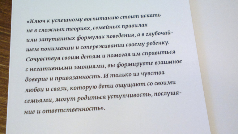 "Хорошее воспитание начинается в вашем сердце и продолжается в те моменты, когда ваши дети переживают сильные эмоции: расстраиваются, злятся или испытывают страх. Оно заключается в оказании поддержки тогда, когда это действительно важно. Эта книга укажет вам правильный путь"