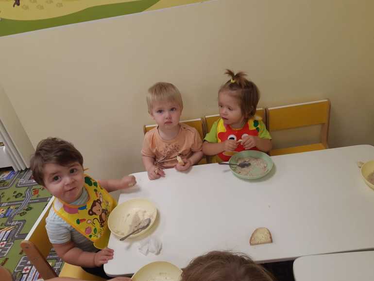Распорядок 🕛 с утра свободное время, в 8:30 зарядка, в 9:00 завтрак, в 10:00 творческие занятия (лепят, рисуют, музыкальные занятия), в 10:45 перекус (с английским, но как это происходит - хз), в 11:00 собираются на прогулку, в 12:20 обед, с 13:00 до 16:00 сон (хотя спят все кто как и кто во сколько, и после 16 тоже не будят, если что), в 16:30 полдник, с 17:00 до 18:00 прогулка, в 18:30 ужин, свободное время (90% забирают часов до 19).