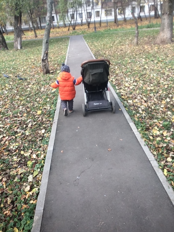 Площадки: неинтересны. На детей ему по фиг. Есть его любимая коляска, которую он катает и не отпускает на прогулке ни на минуту.