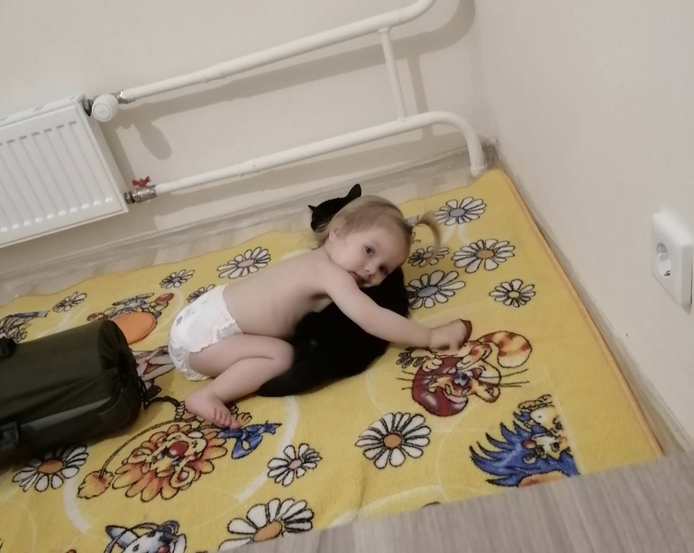 С речью всё ещё странно. Подобие речи появляется, но пока 90% - эмоциональное бла-бла-бла. Говорит и знает: мама, папа, баба, деда, знает котов по именам, говорит гав и мяу (весьма своеобразно)), уууу на самолёт, цокает, как лошадка. Показывает части тела, я периодически добавляю что-то. Научила Валю показывать, сколько ей лет. Слова, просьбы в принципе понимает - мусор выбрасывает, вытирает тряпкой пол, идёт к папе/маме, закрывает дверь, свет включает, пытается повторять слова (по настроению), трусы снимает, чтобы поменять. Одеваться пытается, но пока тщетно. Снять зато может снизу всё, футболку с помощью. Любит надевать сапоги и шапки, вообще пока с одеждой нет проблемы)