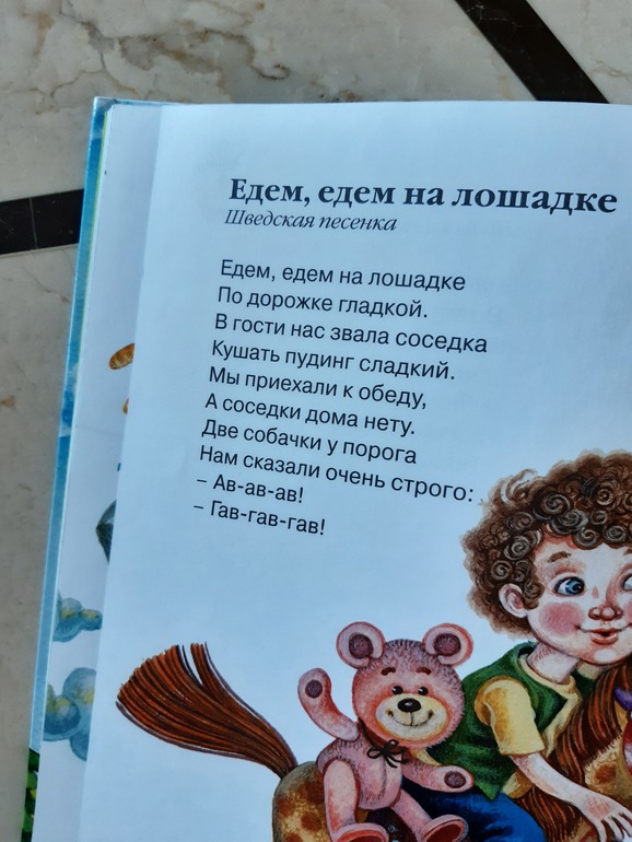 Абсолютно милая книга "Едем, едем на лошадке", новые остроумные и старые родные песенки и стихотворения русские и народов мира. Любит ее))
