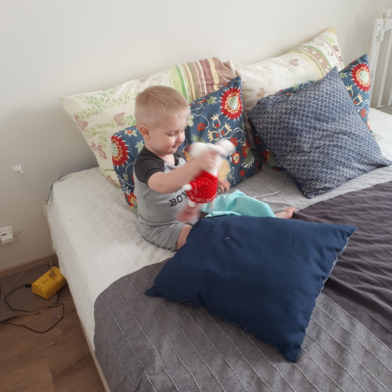 8:00-9:00. Наводим порядок в квартире: заправляем постели, разгружаем ПММ, убираем последствия готовки завтрака и игр с папой, кормим кошек (один из любимых ритуалов сына), быстренько прохожусь пылесосом (Лев в этот момент либо у меня отобрать пылесос пытается, либо свои помогает) - все это приправлено бегом друг за другом по квартире и ползаньем по нашей кровати