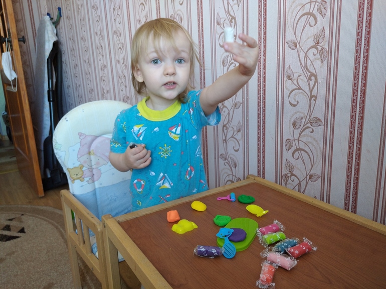 Как Соня играет и развивается? Сейчас наибольший интерес вызывает конструктор по типу Лего, ещё очень понравилось разыгрывать с игрушками сценки из мультиков (да-да, у меня ребенок смотрит мультики, это ещё одна сложность, возникшая из-за меня же). Также она обожает наклейки, с охотки может поиграть куклами, покатать машинки, побросать мяч, любит рисовать и лепить из модулина.