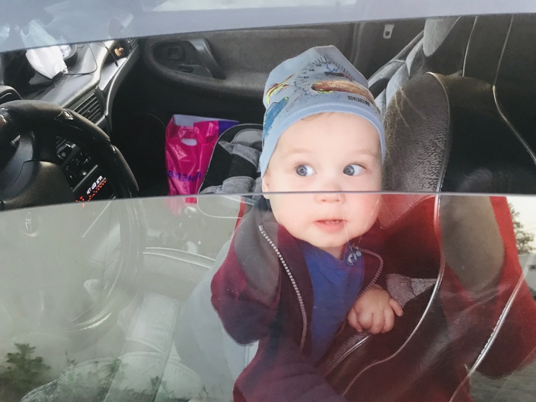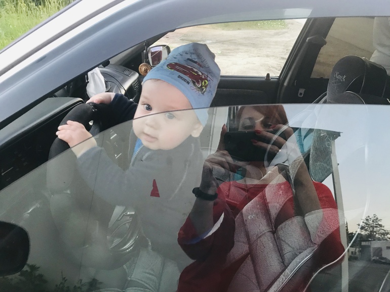 Недавно в машине сидим, ждём папу с работы. Артём уронил телефон между дверью и сиденьем. Взял мою руку и потянул туда, чтобы я достала.