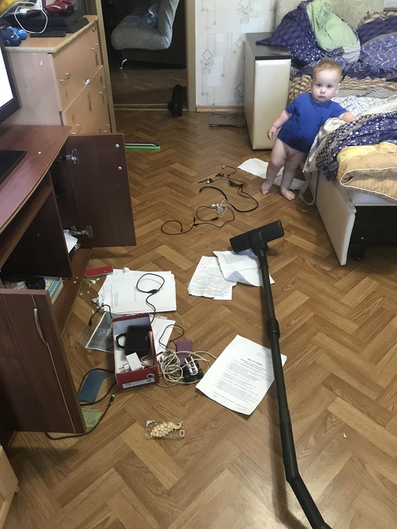 Иногда у него включается бешеный пропеллер и Артём бегает по квартире из комнаты в комнату и раскидывается все, что найдёт.