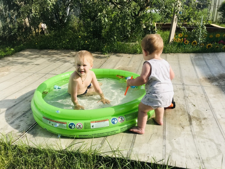 Потом у Артёма полез зуб и Осип голос. Сейчас все хорошо, но погода не радует.