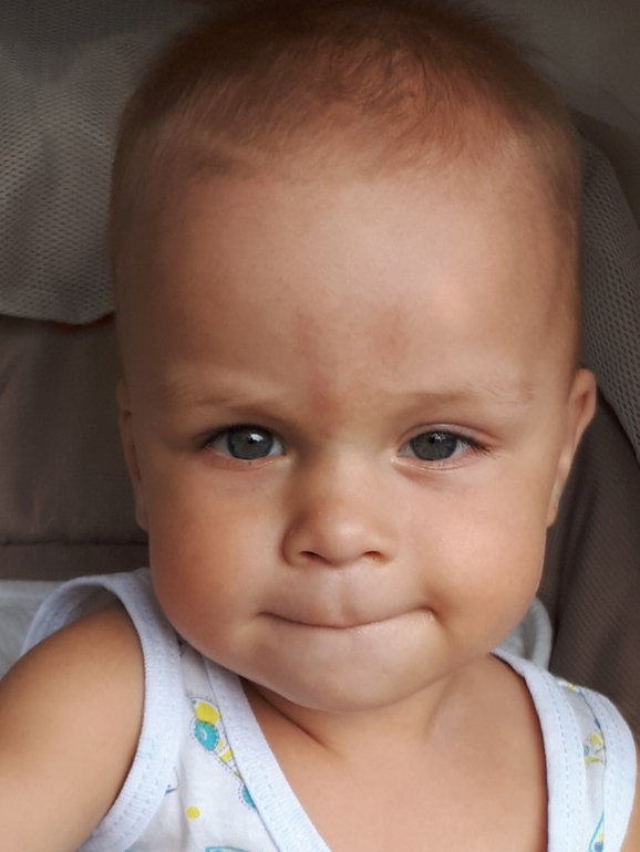 У сына в этом возрасте были серые глаза. Думали, что будут голубые, как у папы. Но они стали карими, как мои.
