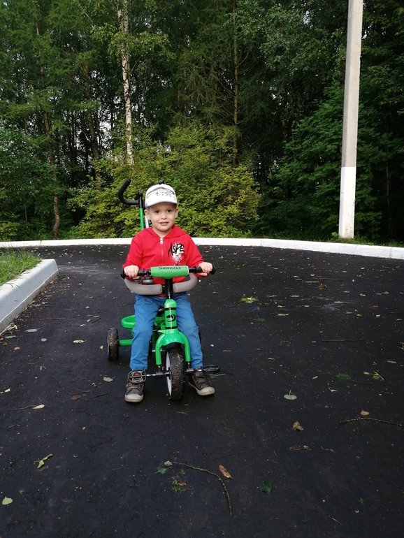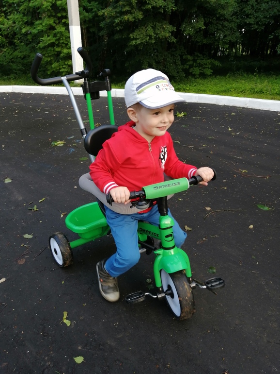Герман - колясочный ребёнок, и куда-то мне далеко пойти с ним - уже проблема. Самокат ему почему-то вообще не зашёл, стоит в углу дома, прокатиться 100 метров на улице и всё. А вот велосипед - это прям его))