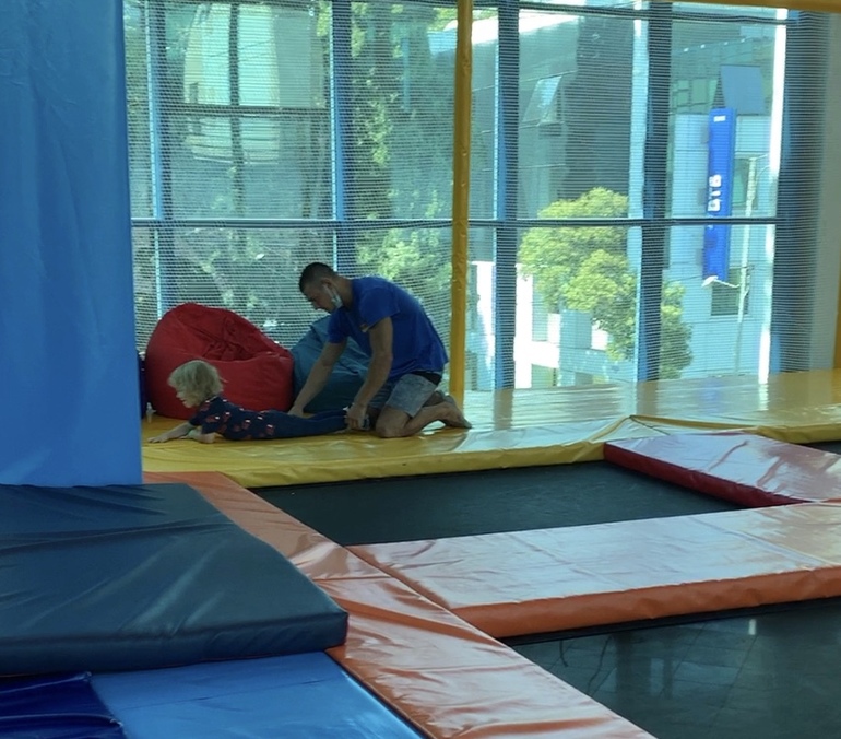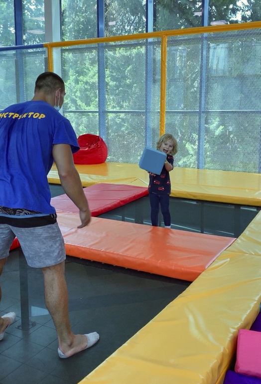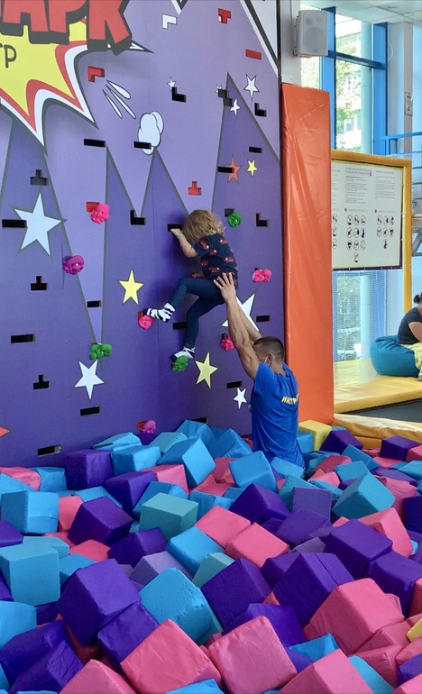 В общем, с инструктором реально круто! Научили прыгать, спрыгивать и полазали конечно. Изначально хотела акробатику, но не нашла группу для малышей.