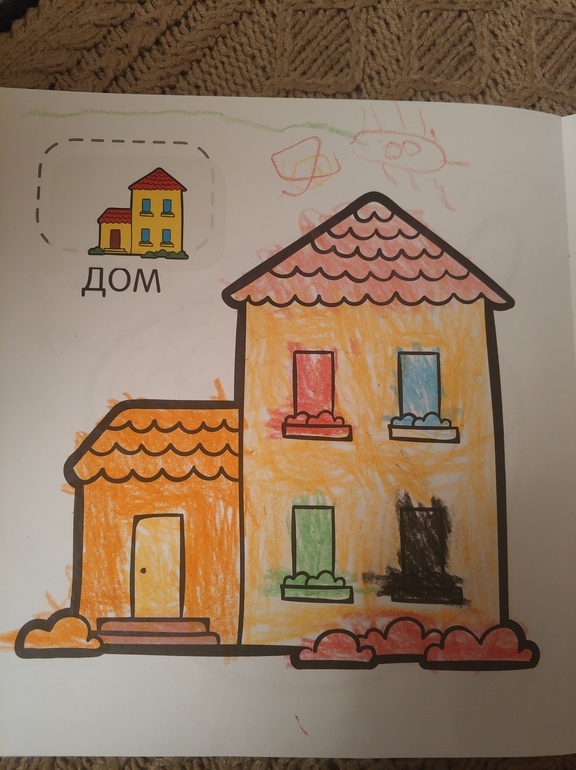 Зашли, наконец, обычные раскраски, но с наклейками. Раскрашивала домик, случайно поставила на стене закорючку, похожую на 9, пришла мне показать, говорит, это цифра 9. Я предложила написать большую цифру, чтобы было видно номер дома, она пошла к столику, вернулась с полностью раскрашенным домиком, большой цифрой 9 и паучком над ним) Очень удивила, цифры писать её никто не учил.