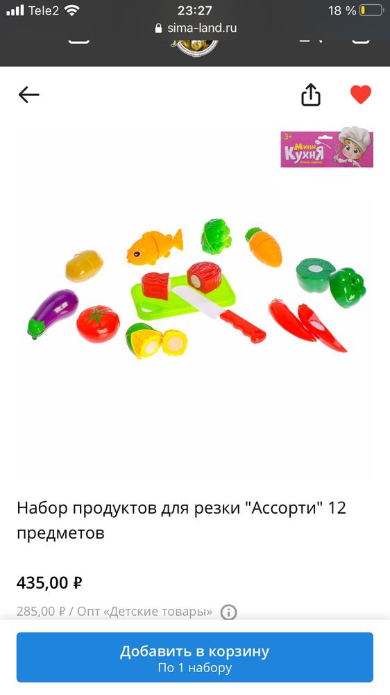 Максимум один набор чего-либо. Например, набор Лего Дупло и книги, вот книг можно много)))