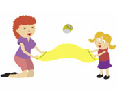 Ребенок и родитель, друг, дедушка и т.д. держат плед в руках , каждый с двух краев. Задача состоит в том, чтобы подбрасывать мяч вверх , стремясь не уронить на пол!