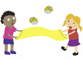 ·Попросите у ребенка придумать, какими разными способами два человека могут действовать сообща, чтобы перенести мяч без помощи рук