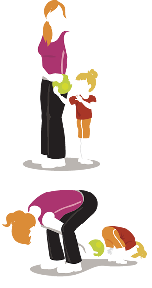 Позиция родителя: Стоя, ступни на уровне плеч, вы держите мяч перед собой