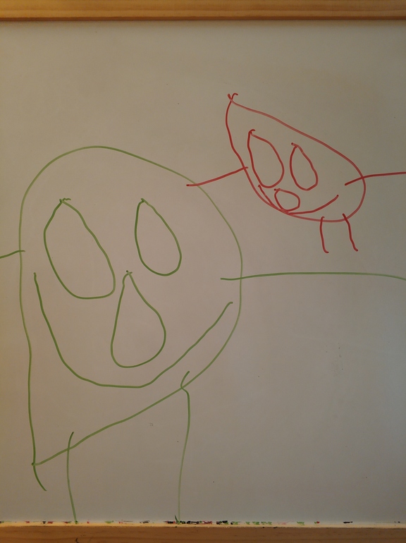 Рисует часто, в сюжетах появились свинья с ноздрями на пятачке и семьи: мама и сын или папа и сын. Лего Классик - хит, второй набор на НГ купила. Лепку очень редко достаёт, пазлы и мозаику часто. Любимая настолка всё та же - День и ночь. Кубики Сложи узор и набор кубиков, где нужно складывать картинку из 4х.