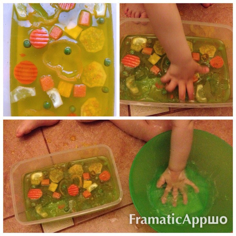 Игры с водой в этом возрасте были очень популярны и долго длились. Ставила в башне помощника, с которой свалиться невозможно, рядом с раковиной в ванной или с мойкой на кухне, включала воду и давала несколько мелких ёмкостей, половники, ложку. Или ещё на плиточном полу с водой играла, кастрюля с водой ставилась на противень, те же ёмкости, половники.